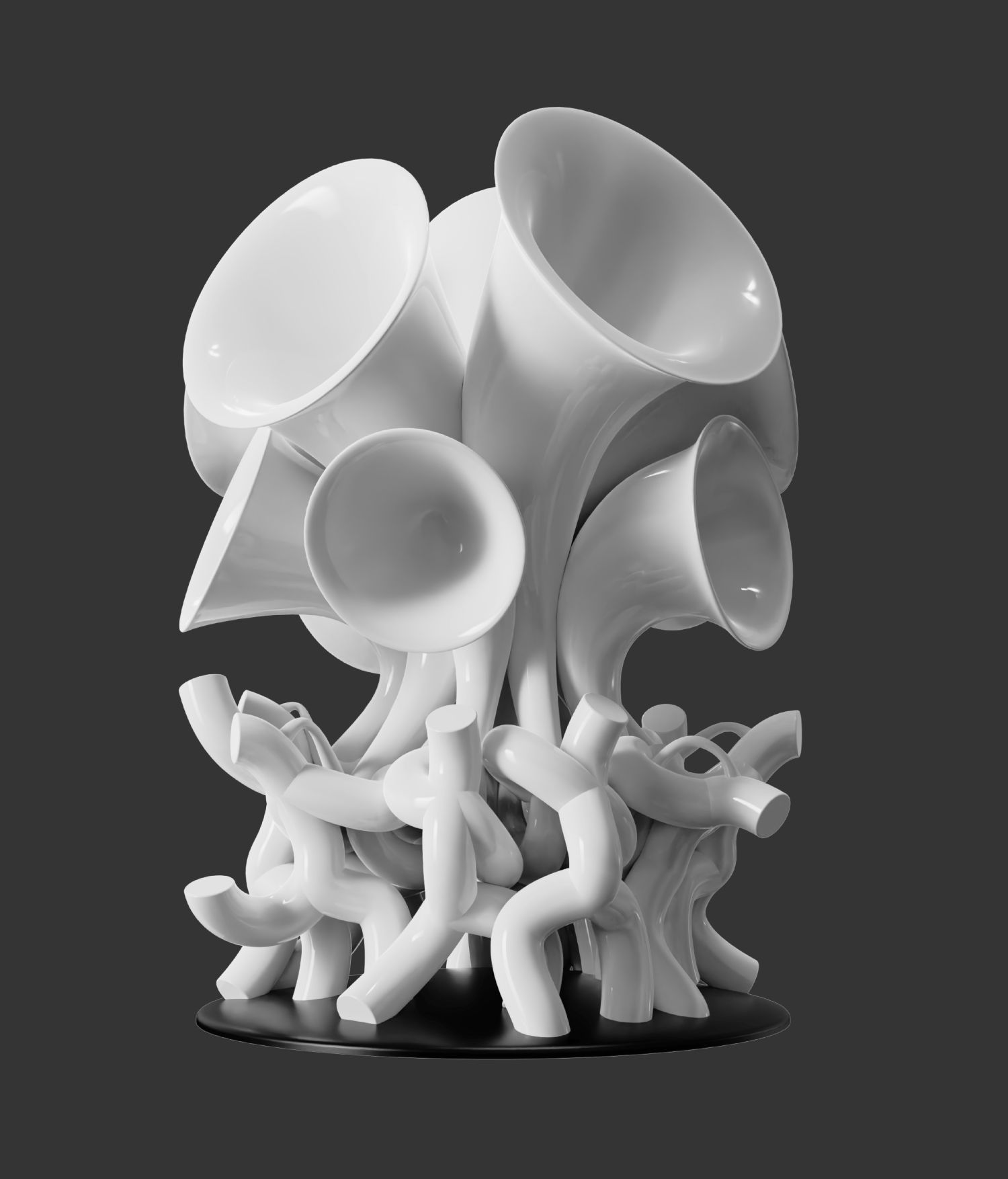 曾振伟的“圆管人”是永恒的图腾,发出振动信号,引领我们走上一条理想的道路,充满精神共鸣。通过创造一种散发着强烈引力和辐射效应的风格来突出深刻的概念,成为当代中国艺术本质的象征。
