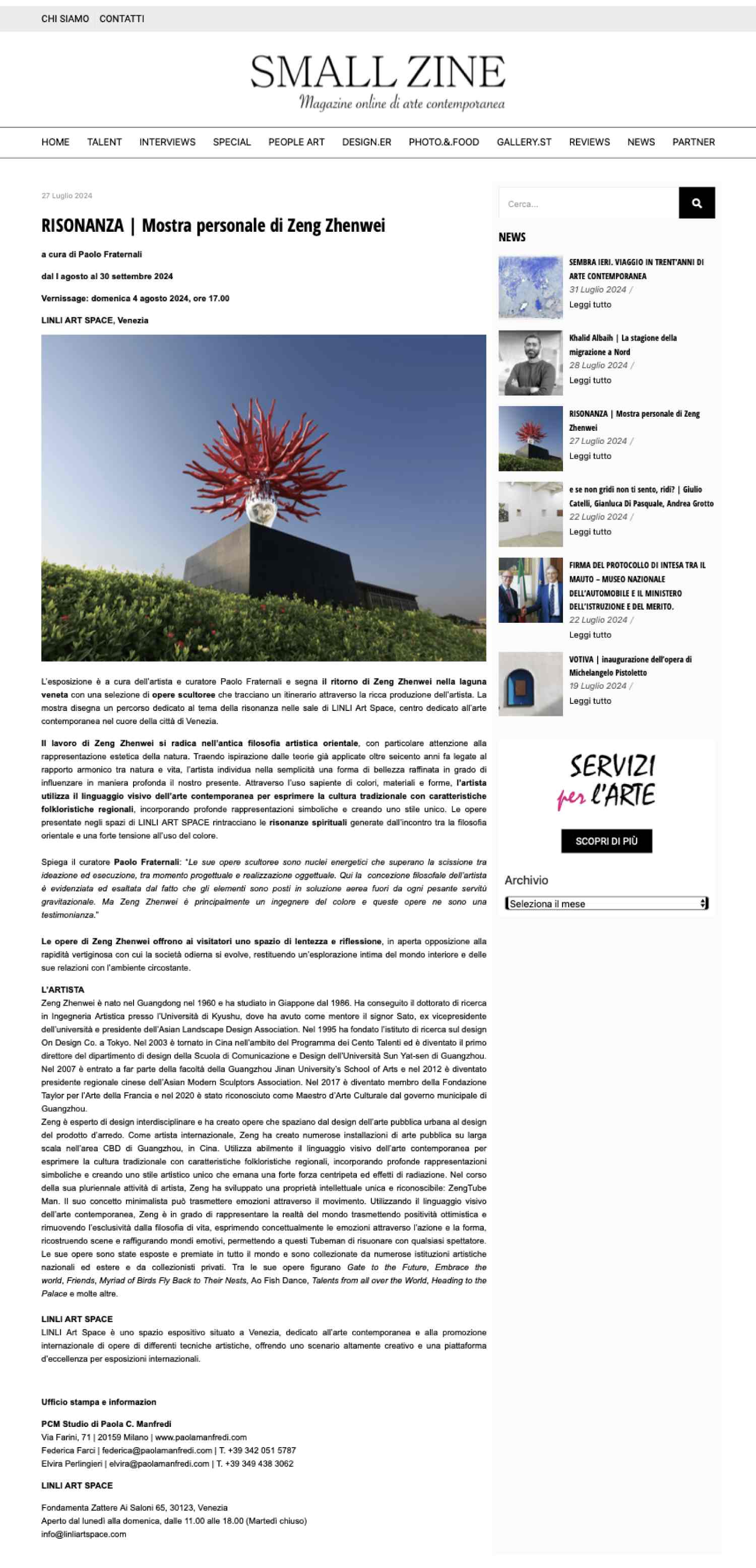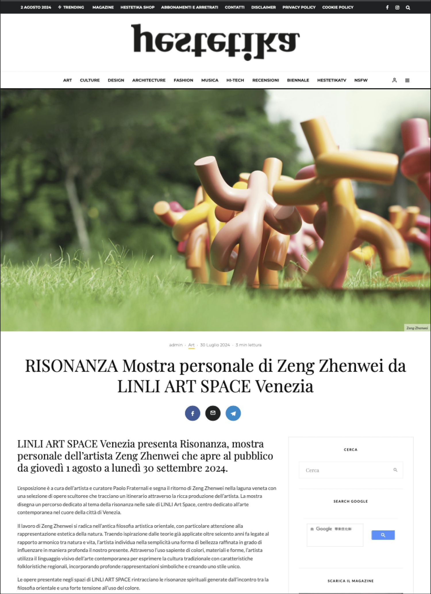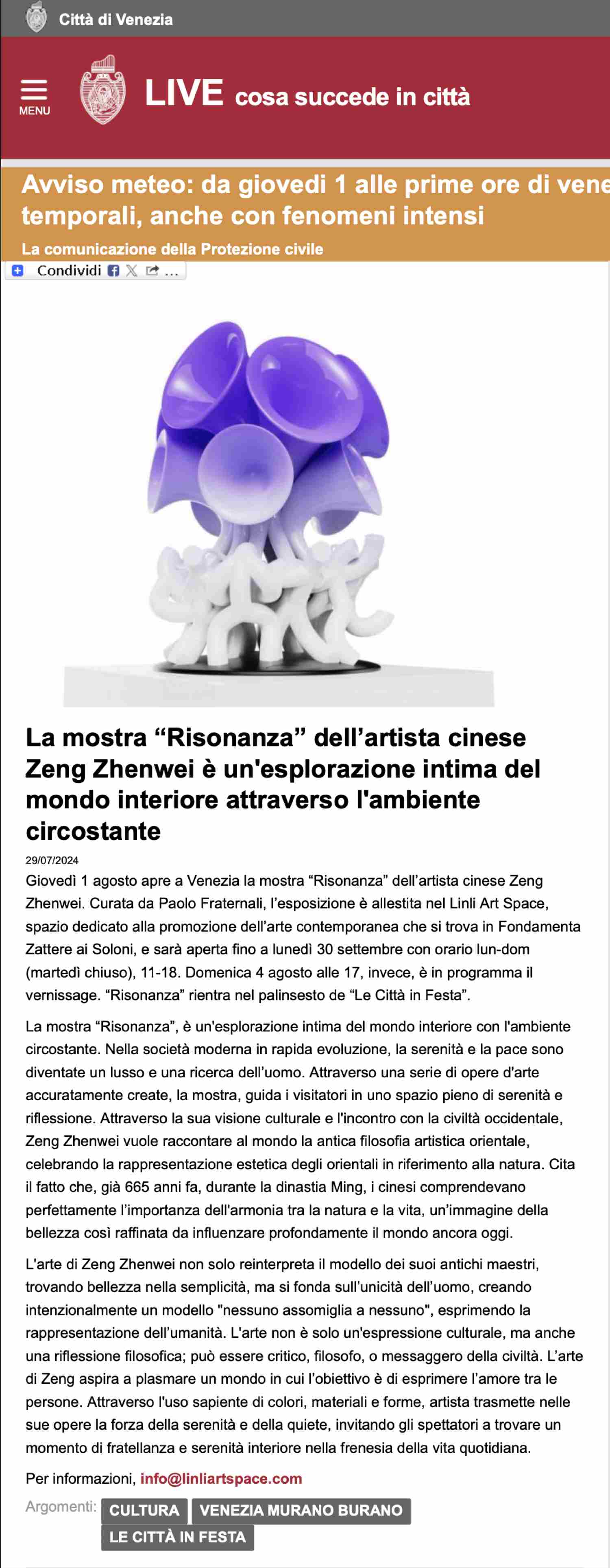 本次展览由曾振伟工作室、ZengTube圆管人品牌以及意大利 LINLI艺术空间联合主办,并得到意大利威尼斯市政府、意大利威尼斯设计周的官方背书和大力支持,以及意大利各大媒体宣发报道。