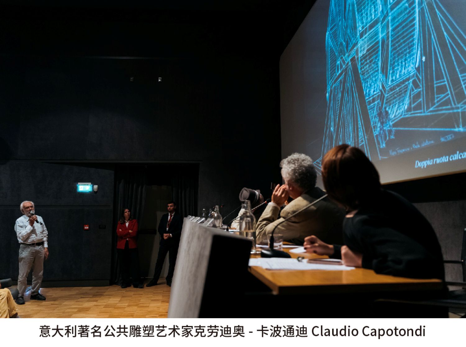 87岁的克劳迪奥-卡波通迪Claudio Capotondi是意大利国宝级的雕塑大师,他于1937年出生于意大利塔奎尼亚的老伊特鲁里亚市。一直以来生活和工作于罗马、纽约两地。他分享了其2000年在罗马创作的“两千年拱门”,如何用巨型石头结合古老的意大利建筑的功法去构建罗马之门的整个创造的过程和思路,他也因此获得了卡拉拉市著名的米开朗基罗奖。