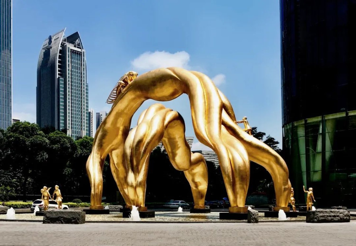 纵观北京、上海、深圳、广州,现在是四角鼎立。但是我可以说,广州作为改革开放最前沿的一个城市,在公共艺术方面是做得最好的城市,当年美国国家地理杂志介绍我的《未来之门》雕塑和广州经济建设成就时就说过:当金蝉登顶,广州拉开了现代化建设的序幕,这已经证明广州的公共艺术是具有国际公认的时代地标的,这点比北京、上海……全国任何一个城市都做得好。