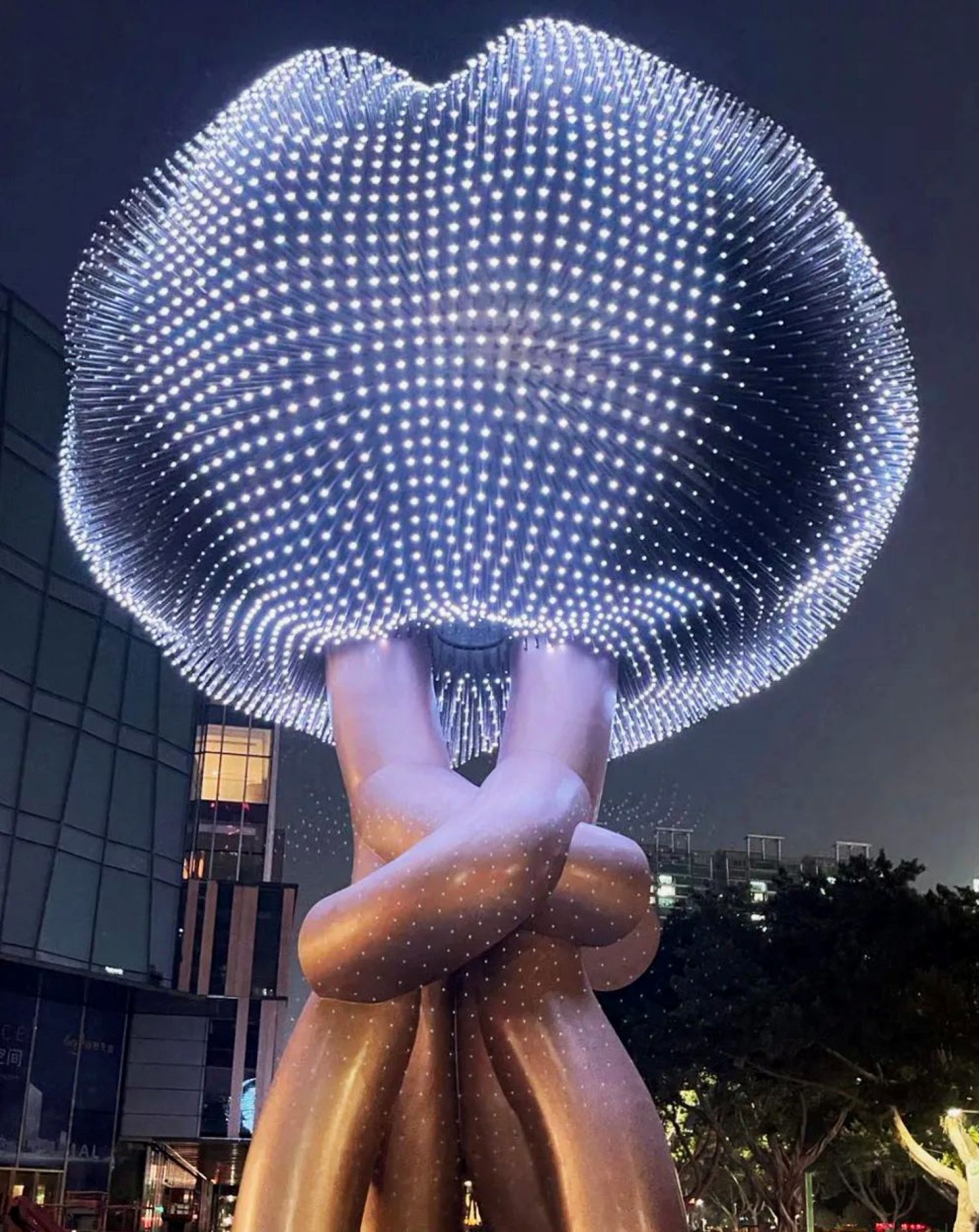 曾振伟: 城市公共艺术的文化构建层面,深圳的城市生态就不及广州的丰富了,就像我最近在广州创作了一件新的城市公共艺术《拥抱世界》,矗立在中信广场旁边新ICC大厦中央广场上,这是我首个利用“声光电”与观众互动的大型作品,或者说首次利用高科技手段和复杂结构相结合的一座城市公共艺术作品,每位观众都可以在这件作品上,按自己喜欢的场景故事来定制专属的灯光演绎,在交互中感知公共艺术背后的深层次文化意识。对比而言,深圳虽然会在挺多交互展览上呈现交互艺术,更多都是临时性的互动装置,但在广州的城市建设上都已经能支持艺术家把这种前沿交互的科技与艺术相结合,运用在城市永恒的大型公共艺术作品上用新科技、新观念、新语言,打破过去观众静态观赏公共艺术的形式,让观者和作品形成一种有互动、有思想、有情感的碰撞,这应该就是城市文化形态的一种进步。这种战略高度与文化建设的规模便已经能证明广州这座城的远见。所以我们对广州公共艺术的发展是非常有信心的。