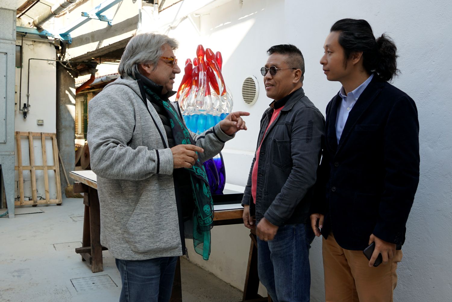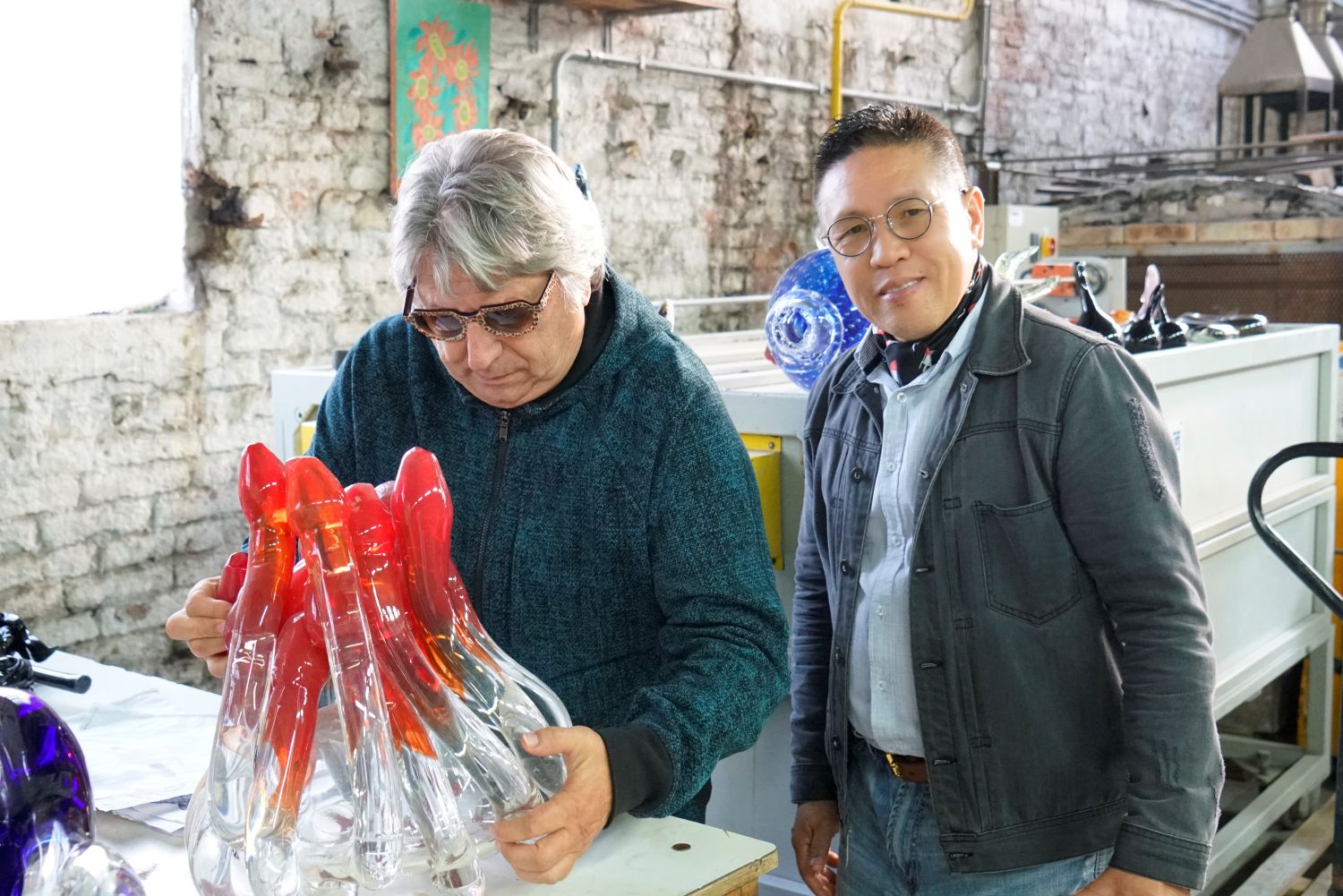 为此,曾振伟先生提前抵达威尼斯,在意大利威尼斯Berengo Center整整呆足一个星期,全程参与到作品的制作过程中,充分感受了威尼斯玻璃艺术工艺的世界高超水平、以及参观加工现场的心灵震撼。在双方合作的过程中,Adriano Berengo亦对曾振伟先生艺术表示极高的赞赏。在制作现场,Adriano Berengo当众宣布,他将在2019年全球最高水平、极具世界影响力的威尼斯双年展中亲自挂名为曾振伟先生设立专题个展、并推荐给威尼斯双年展最高学术评议委员会。此前他曾为世界著名建筑设计大师扎哈•哈迪德、中国著名艺术家艾未未先生等世界著名艺术家做过个展。