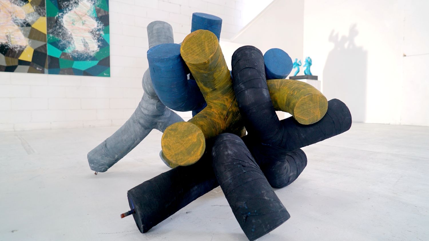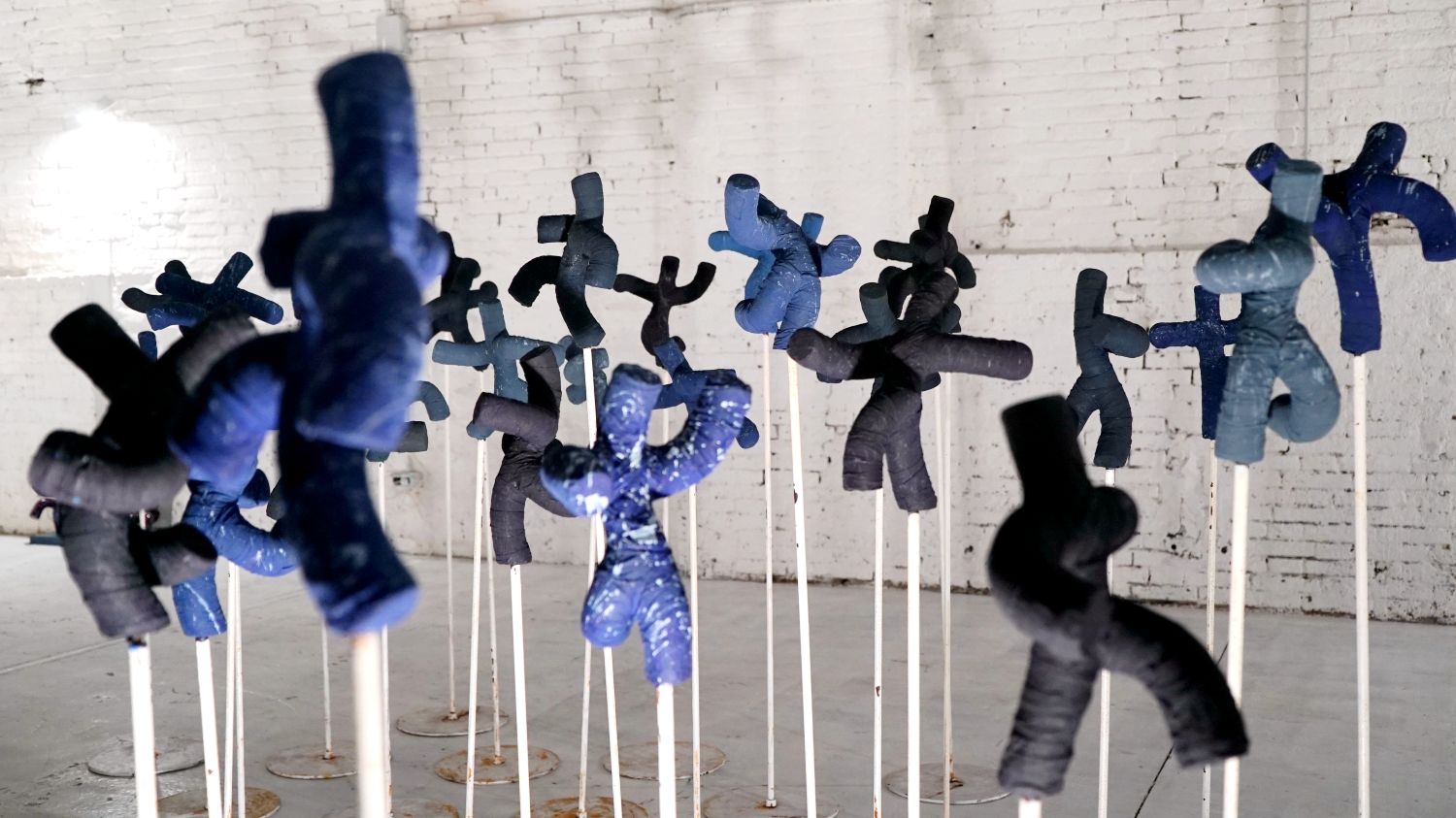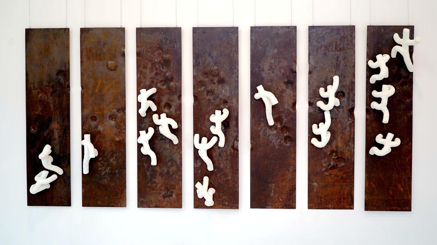 以“曾振伟的快乐人”为题,2017年10月20日-2018年1月5日,曾振伟先生的展览正式亮相威尼斯。16组“曾式快乐人”占领280平方的展厅,不同于常规架上雕塑一味置于驾上的展现方式,展览现场的作品或在墙上激昂攀爬;或从地面冲出在空中,欢乐追逐……值得一提的是,这些“曾式快乐人”较曾振伟以往的作品形态表现有所不同,他们或披上了彩色的外衣,黄的、橘红的、红的交织;蓝的、灰的、黑色交织;或被厚厚的染色的纱巾包裹。穿上了外衣的“快乐人”有了一层更晦涩的精神内涵,让观者产生疑虑:快乐真的是真正意义上的快乐吗?