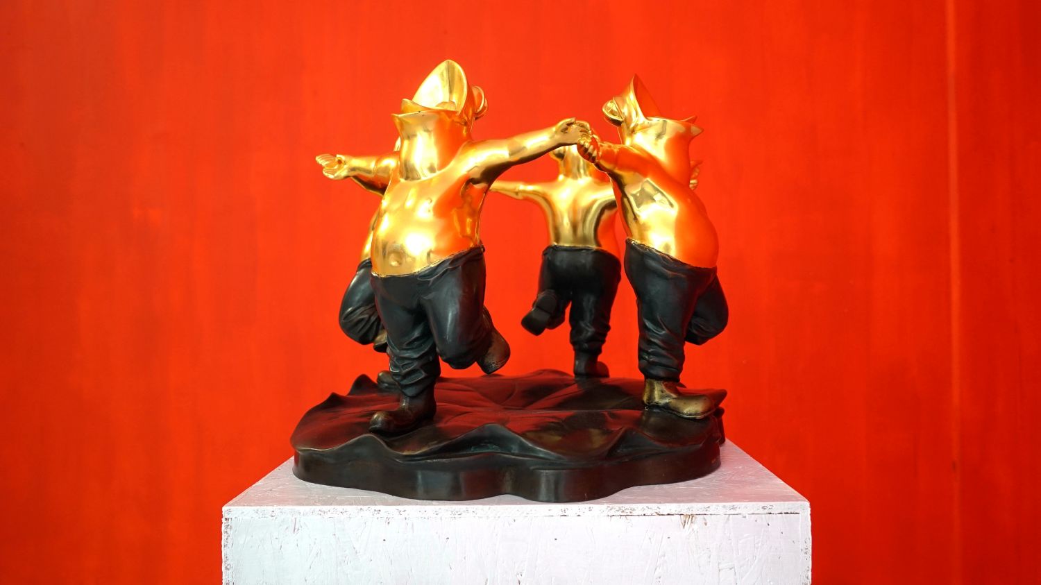 可以说,不管是雕塑外在形态的再创造,还是展览现场独特的展现方式,皆是曾振伟先生为了本次展览精心为之。曾振伟先生的艺术创作一直以“快乐人”为主体,弱化人的身份,以肢体语言结合色彩心理展现全人类共通的“快乐”,并舍去了人类中狭隘的排他意识。然而当下社会环境纷繁复杂,各种人性扭曲,当下人类的快乐,是否真的是快乐?还是以快乐为名义掩藏难言的脆弱与被扭曲的心态?事实上,人类的的确确生活在人人都希望快乐的年代,但同时并不快乐。这就是曾振伟先生想透过这些雕塑表达的一种人性的现实观点。