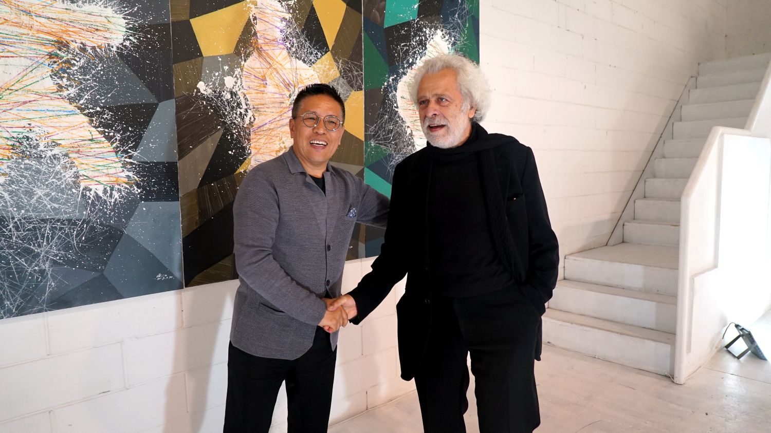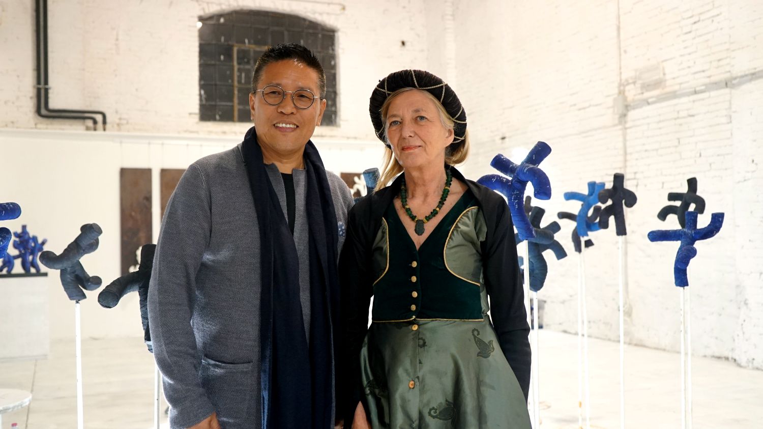 就在“曾振伟的快乐人”在开幕收获各界好评之时,出身法国艺术和外交世家、法国国家骑士勋章获得者、欧洲著名艺术家、艺术运动及艺术评论家Aude De Kerros于展览开幕后专程从巴黎来到威尼斯观看曾振伟的作品。之所以关注到曾振伟先生的展览,源于她正在写的关于当代美术运动的专著,其中需要介绍一位具有鲜明特质思想的中国当代艺术家。二人就“当代艺术”这个命题进行了真挚的讨论与交流。