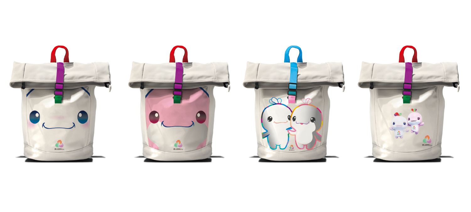 带有吉祥物“喜洋洋”“乐融融”的运动背包