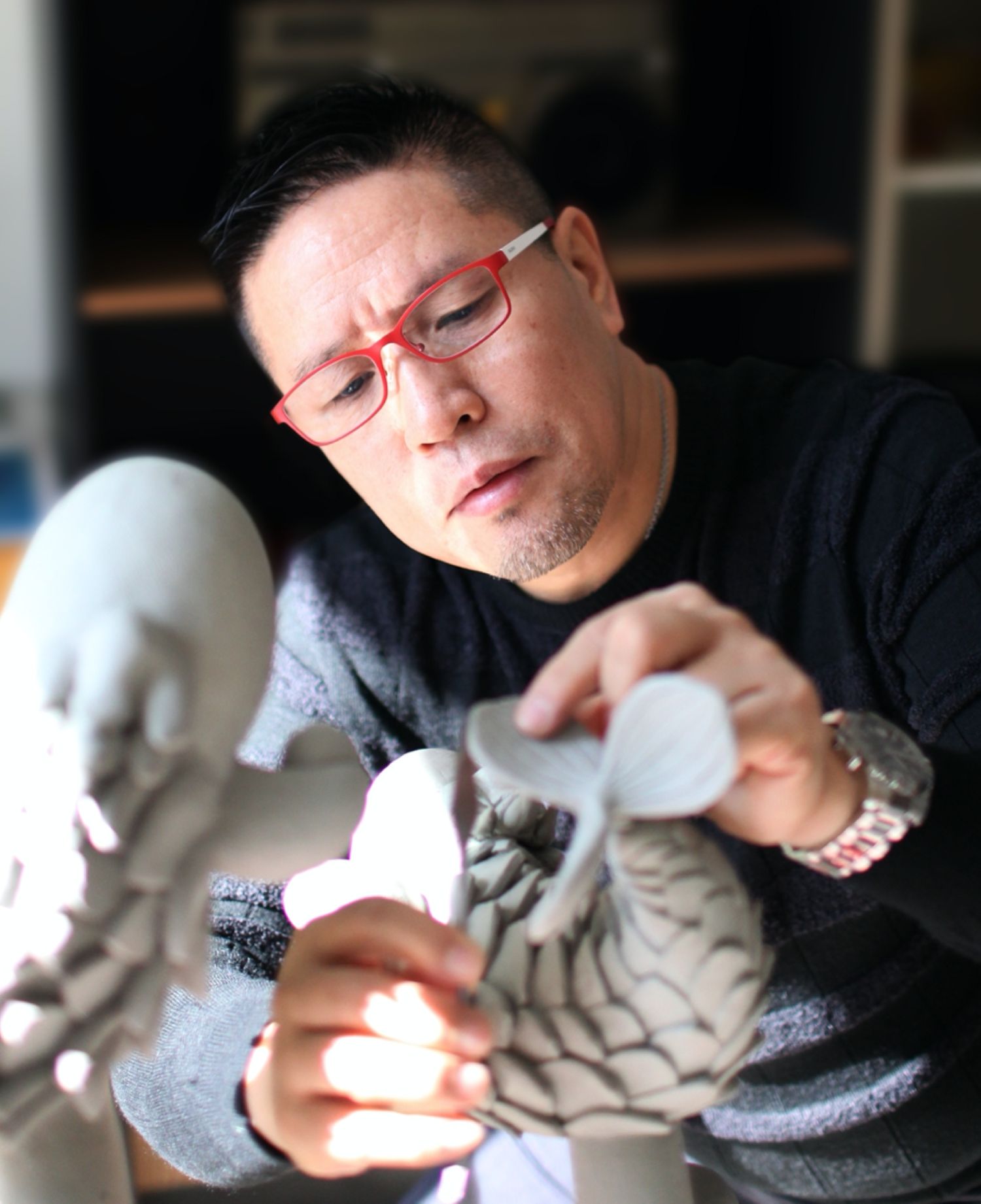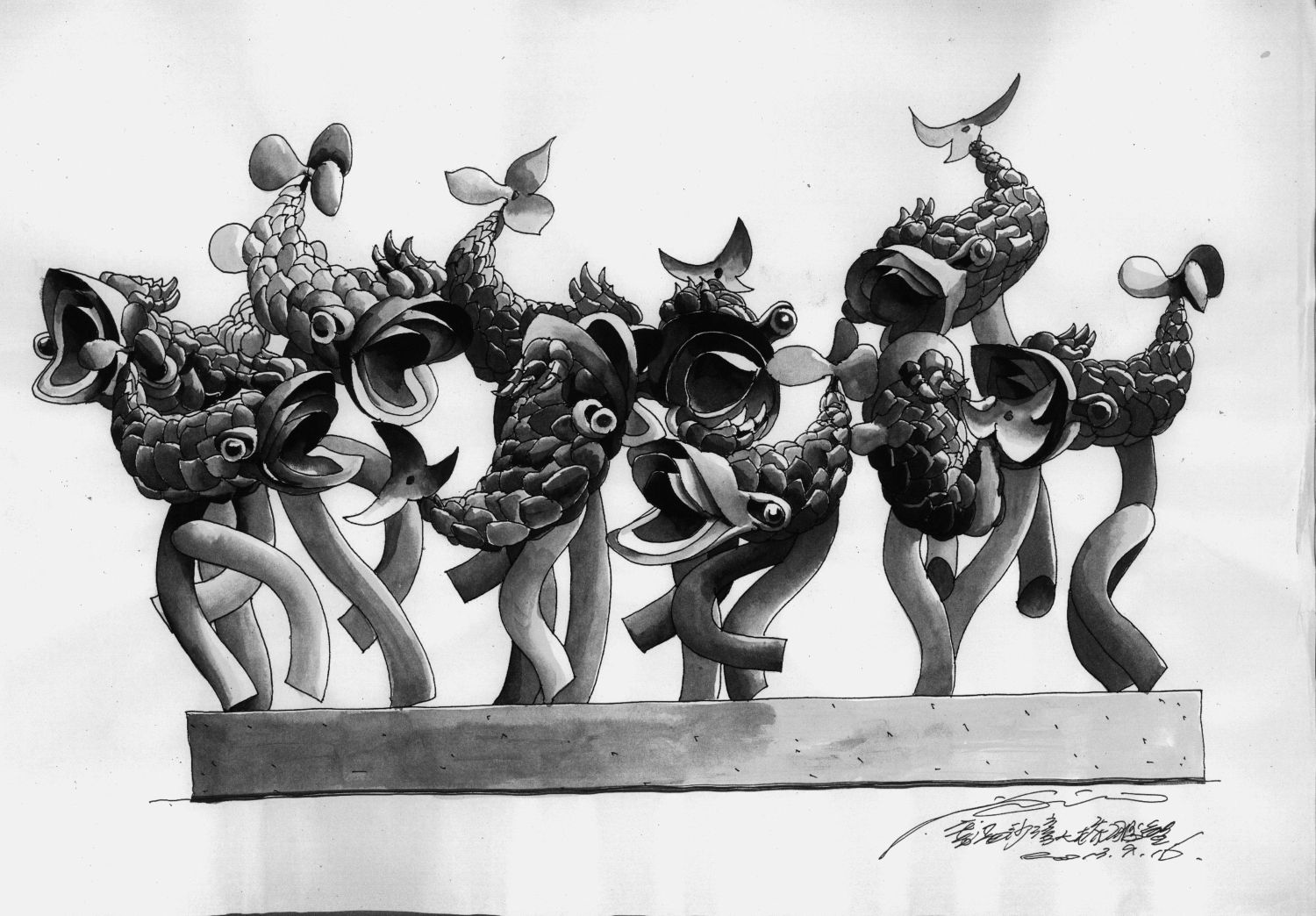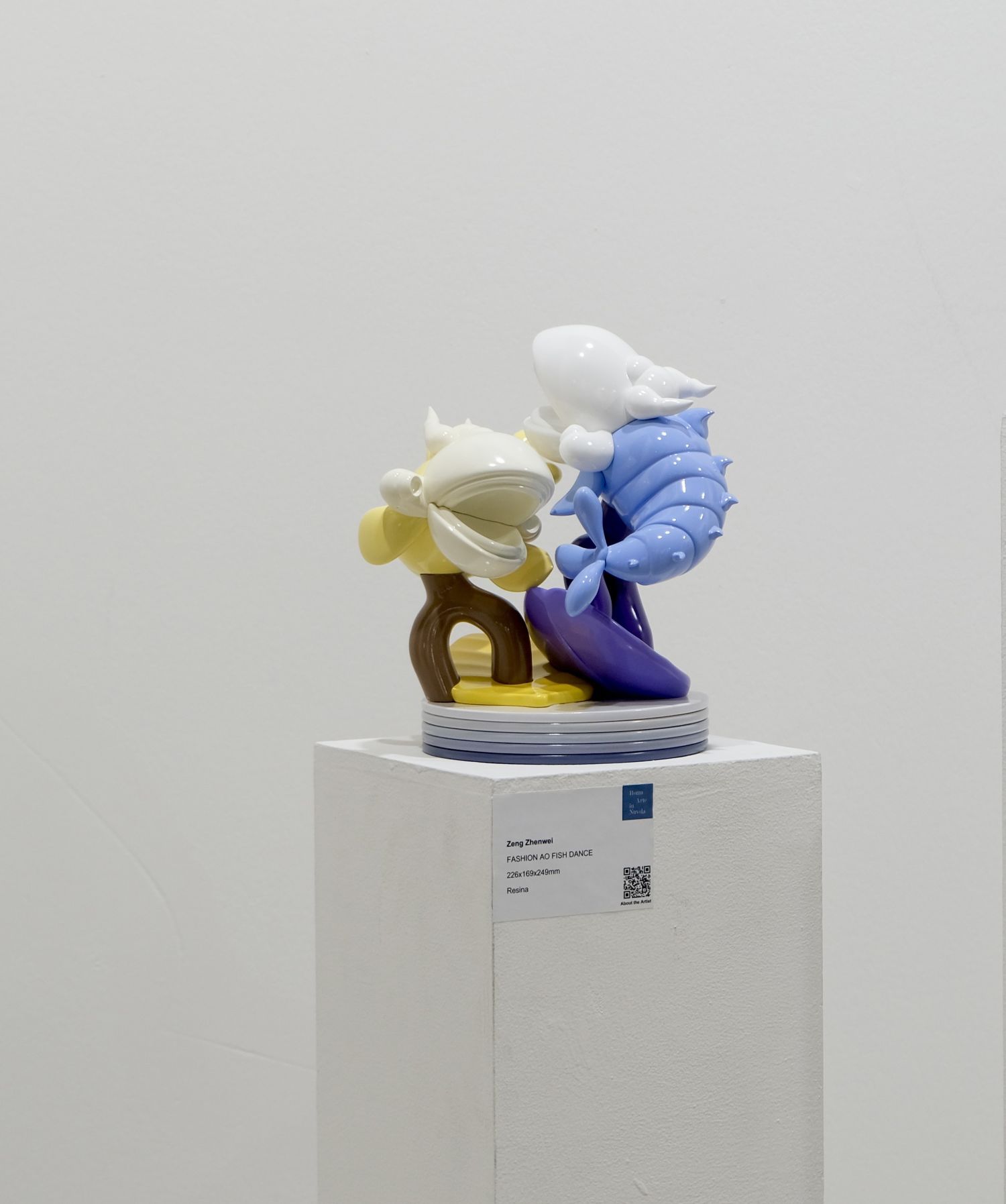曾振伟透露,其实在2014年他就已经为珠江新城,广州越秀集团北塔广场竖立了两组以鳌鱼为题材的雕塑。在2021年,他就以此为基础,作了系统开发。他大量地沿用本土的民族文化的元素,设计继承了“龙头鲤鱼身”,保证了鳌鱼的那种基本原型。同时,又赋予了它非常强烈的时代符号和时尚色彩。设计把芭蕉作为一个滑板,用现代的色彩作了概念的体验,让它成为了一个脍炙人口的艺术衍生品。