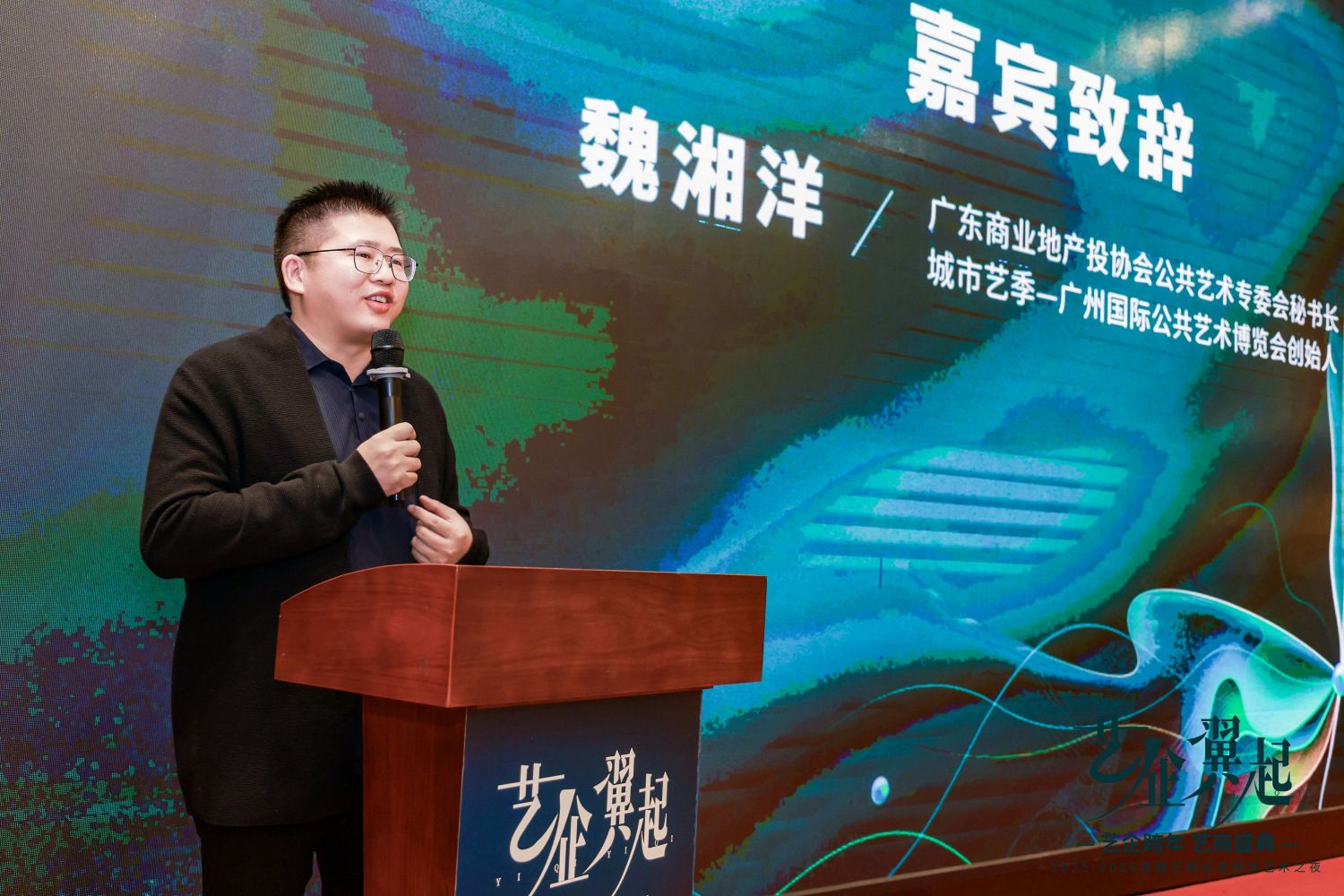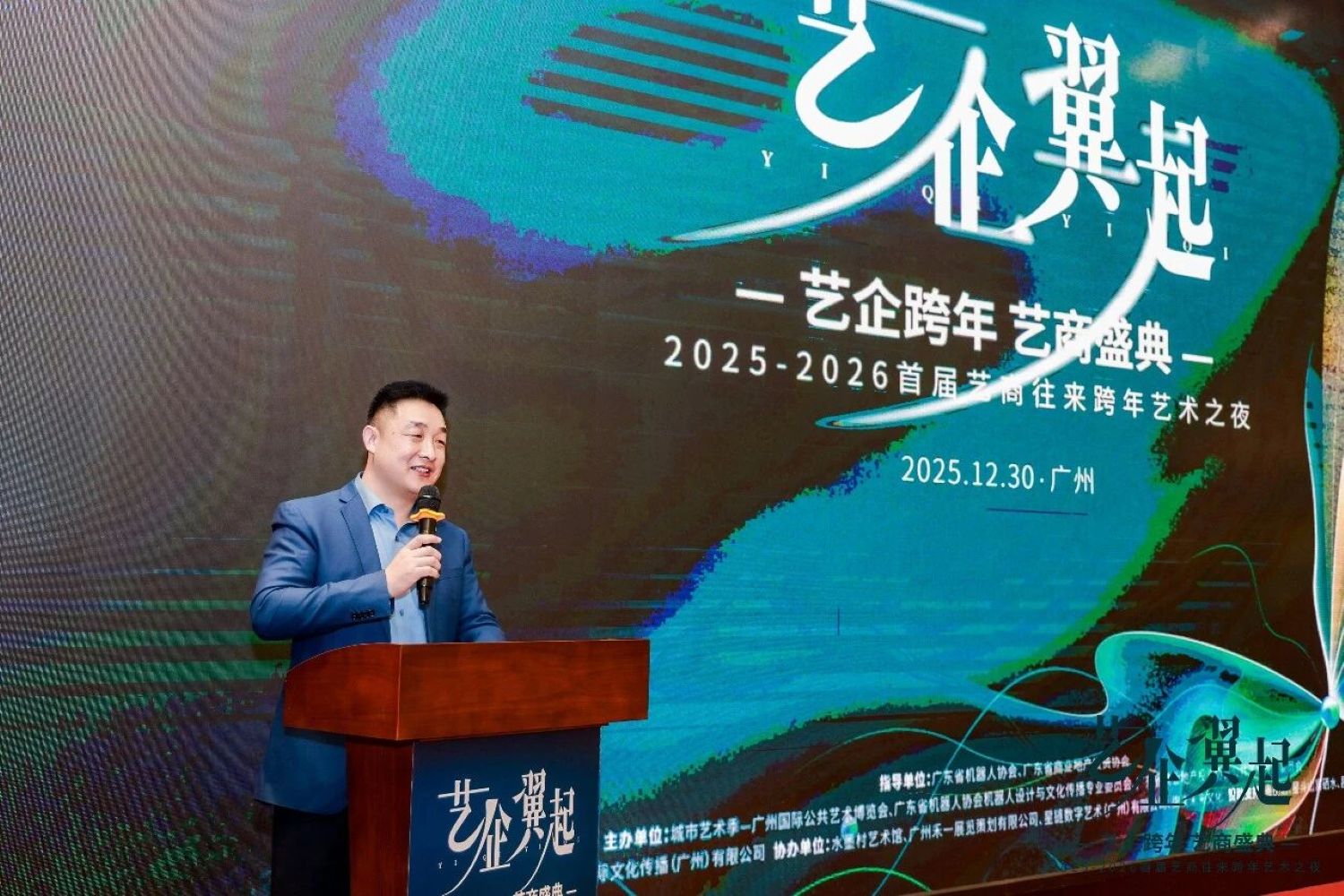 活动尾声,联合主办方“城市艺术季—广州国际公共艺术博览会”创始人魏湘洋致辞答谢。他对所有嘉宾莅临与各界支持表示衷心感谢,并表示:“‘艺企跨年’不仅是一场活动,更是一份责任与期许。我们将不负众望,携手同仁把平台做大做强,打造连接艺术与商业的坚实纽带,共开创互利共赢的艺商融合新局面。”