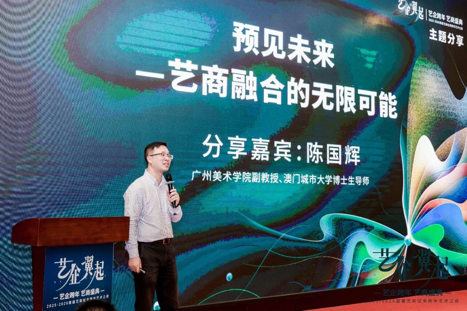 活动期间,广东省机器人设计与文化传播专委会会长、广州美术学院副教授、澳门城市大学博士生导师陈国辉带来《预见未来——艺商融合的无限可能》主题分享。他以“科技为骨,艺术为魂”破题,指出在人工智能、智能制造迅猛发展的当下,人机协同、虚实交融的新时代正重塑产业格局,未来竞争力核心将是“技术+美学+情感”的复合价值体系。